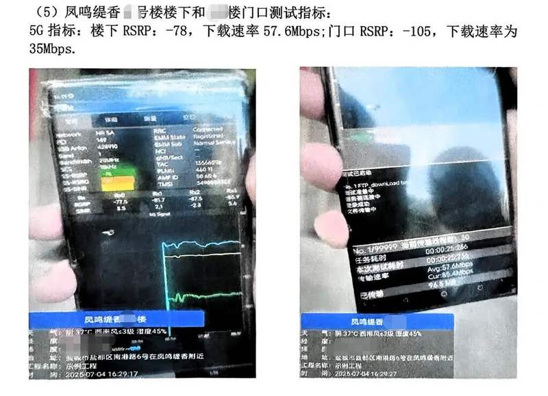 ▲ 相关检测报告。图片/红星新闻 网速慢是江苏盐城陈先生的一个问题。据红星新闻报道,挨家挨户测试显示,程家所在楼层5G网速为35Mbps,下面楼层网速为57.6Mbps。他购买的5G手机套餐每月花费129元,下载速度为5亿。为此,他多次向盐城电信投诉,后来又向江苏省通信管理局投诉。盐城电信表示,500M是“最大速率”,是基于理想实验室条件的理论值。但地区通信管理办公室证实,协议内容未说明,协议中存在一些不清楚的地方,对盐城电信进行了批评教育。当用户购买5G套餐时,他们期望获得符合要求的网络体验这是包装的标准。这种对服务质量的期望是合理的。如果您的实际网络速度比预期慢很多,可能会影响观看视频或下载文件等正常使用。经营者必须认真对待用户的投诉和索赔。陈先生购买的5G手机套餐每月花费129元,下载速度达5亿元。盐城电信2025年7月实地勘察发现,陈先生居住的大楼底层5G下载速度为57.6Mbps,其居住楼层的5G下载速度为35Mbps,均低于同一地点检测到的4G下载速度。对于本土运营商所谓的“理论峰值”的解释或许是有道理的。用户手机的实际网络速度实际上受到地理位置、上网人数等客观因素的影响。运营商通过建设额外基站来提高网络速度的努力还包括多方之间的协调问题可能在短期内难以实现。然而,“理论峰值”等原因仍然不能成为运营商忽视网速慢、体验差等问题的借口。近年来,日本网络基础设施建设的进步和完善,越来越需要为用户提供信号好、体验好、功能强大的优质网络服务。 2023年,工信部等11部门联合发布《关于实施‘信号增强’特别措施的通知》,提出大幅增强移动网络(4G、5G)信号。到2024年底,移动网络平均下行接入速度将超过200Mbps,平均上行接入速度将超过40Mbps。到2025年底,移动网络平均下行接入速度将超过220Mbps,平均上行接入速度超过45Mbps。从陈先生对网速的体验和真实的测量数据来看,显然与约定的数据还有较大差距。 “如果速度达到100以上,我同意。目前的几十个是无法接受的。”陈说。事实上,这种“短距离”的网速并非特例。据报道,4G时代存在关于网速问题的争议。据Judgment Documents Network报道,一名用户起诉了他的提供商,因为您的家庭互联网速度带的宽度小于10 Mbps,远低于您的套餐中承诺的互联网速度。在办公室“局长信箱”、“问政四川”等查处海南、甘肃省通信管理的网络平台上,不少用户也反映手机信号不好、宽带速度慢等问题。现实生活中,当更多网友遇到诸如网速差时,他们可能不会选择认真对待运营商,可能会“保持沉默”,甚至认为这是理所当然的,只要网络基本可用即可。但这种情况并不一定合理,也不能成为企业忽视消费者合法权益的理由。互联网速度“不到一磅”,这与协议相矛盾。这本质上是一种违约行为。经营者必须尊重合同精神并承担相应的责任。我必须忍受它。针对用户的合理需求,运营商应当优化技术、改进服务、完善合同条件。即使短期内确实无法达到约定的网络速度,用户也应该获得套餐价格折扣和其他补偿。监管机构还应切实保护用户权益,推动行业标准的制定。用户将无法再利用“为缓慢的互联网支付更高的价格”的优势。撰稿/编辑:何欣(媒体人员)/校对:马小龙/赵琳